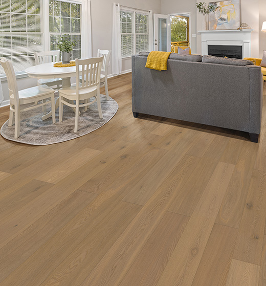5) Los pisos SPC utilizan una película de color común en la superficie, lo que genera diferencias de color mínimas y una textura similar a la del piso laminado.